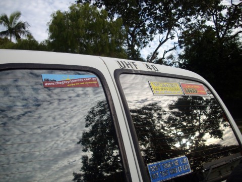 I have proudly affixed my "Grey Nomads" sticker on my Landcruiser.