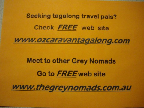 Well we thought they were an endagered species these Grey Nomads, we have been on the road for 8 weeks now and met many travellers who meet the criteria of being a GN, but when we have asked them if they are a member of the grey nomads website it has always been met with a blank look on their faces.