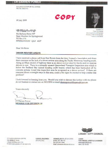 first off. i would like to thank ,our webmistress, for her very kind words,and her front page letter of support. "thank you cindy". all the support i can get, is much appreciated. marg and i see this as a good project, but if all the grey nomads, can give this your support we can get this done. i have also two attachments. they are letters from my local councillor darren power.