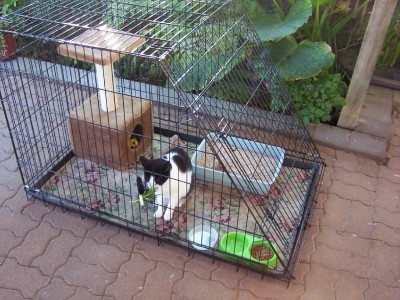I have 2 cats..both indoor....I have a cage that when not needed folds flat.......its about 6'x3'x4' high..we bought it from Cheap as Chips