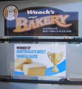 Today Monday 26 finds us in beautiful Horsham - heart of the Wimera and the best Vanilla slices in Australia are on sale here at Waaks Bakery, the sign says so. As we wont be going thru Balranald we wont be able to compare the Vanilla slices on offer there. We had an award-winning pasty for lunch. The Wimera is in full bloom due to the recent rains, crops of Barley and Canola all along the B200, which is an interesting drive from Portland with a vast change of scenery along the way. Went back to try some more of the Vanilla slices today and informed the lady that we were representing a famous Canberra VSA (vanilla slice aficionado) and I could see this woman thinking of all the bakeries in all the world this fruitcake has to come into mine However not to show her ignorance she did say Oh yes, Irene when I mentioned the name of our informant