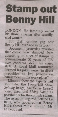 And as for Benny Hill, I used to think it was very funny, but when I see it now, I think it's still funny, but only because it's not politically correct and they're still showing it in defiance - and getting away with it.