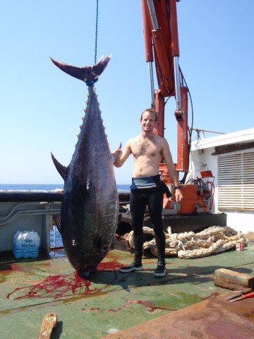 There's a lot of sachimi in that tuna. What a monster! Double poling for sure in the "olden days" in the racks.