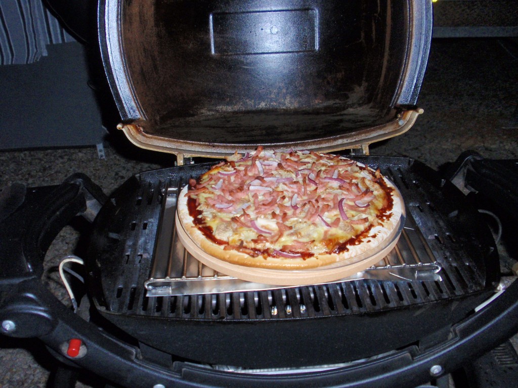 Last night I tried to cook a pizza in our baby Q - unfortunately it didn't turn out too good, burnt base and just cooked on top