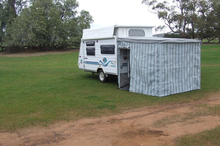 Hi Beth, my van is rear door Jayco Starcraft. It came with a full canvas annex, which fits on the rear and a Carefree roll out awning of the side. I use the side one most of the time.