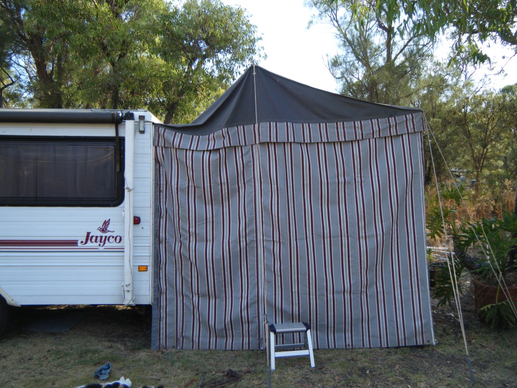 I've purchased one of the pop up side awnings that people use on 4wds nice and light to experiment with. Hopefully will do what I want (cheap & $40 on sale) So far it looks like it will work. Can put it up on my own in a few minutes. When I figure out how to post pictures I'll put some up.