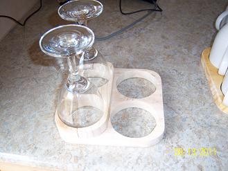 100 mm pvc pipe, 16 mm pine & double height for wine glasses.