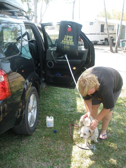 Goodonya AlCath, saw a girl wash her dog (a large Kelpie type) in the womens SHOWER in the amenity block at Cobar caravan park! I like your way better! great pic too!