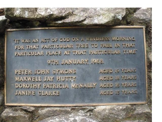 This plaque marked a spot on a walk at Marysville Falls in Victoria. Four young souls taken too soon.