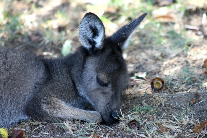 This little fellow was in the shade sleeping while sucking his thumb... his mother was off to one side grazing.. the group or mob were scattered around... I just had to take his photo he looked so sweet...