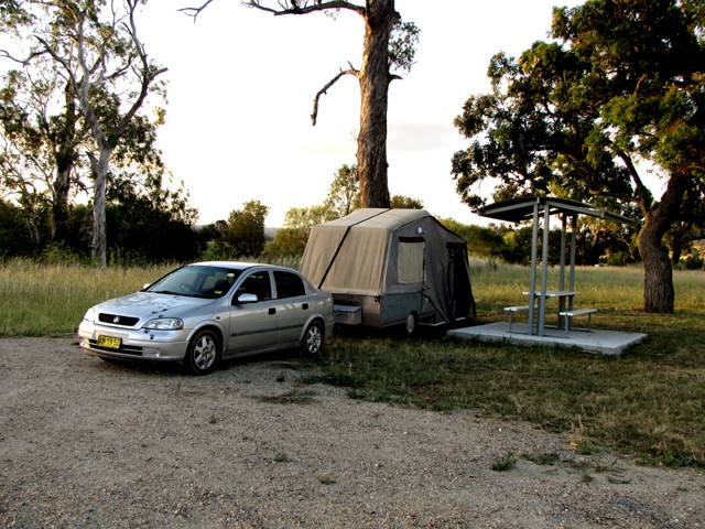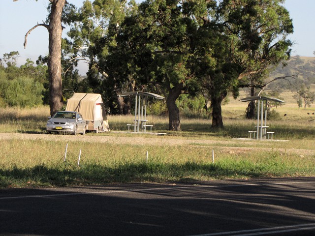 I recently on my way home from the Elvis festival at Parkes and was heading across from Merriwa to Scone when I happened upon this site as I crossed the bridge, there are no facilities as such only two covered picnic tables, however there is ample room for large rigs or tents and everything between. it is very quiet afer sunset and a good nights rest is assured. Thed site is approx 28km ne from Merriwa and 35km sw fron Scone at Bunnan. It is not in the camps Australia 6th edition but may be in the next one. I will attach some photos.