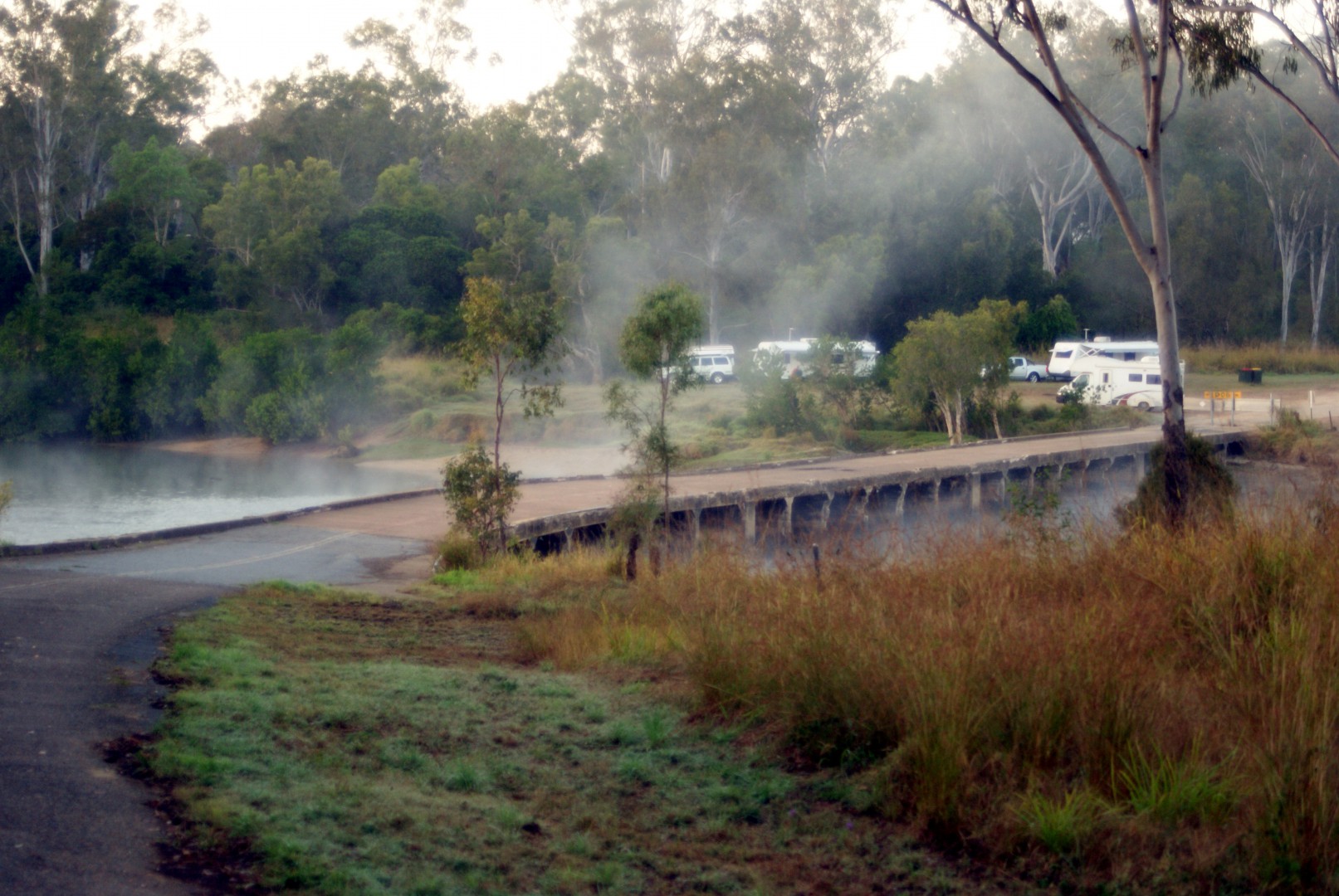 If you want to camp south of the river leave the Bruce H/Way @ 23 58 07s. 151 10 39 e.