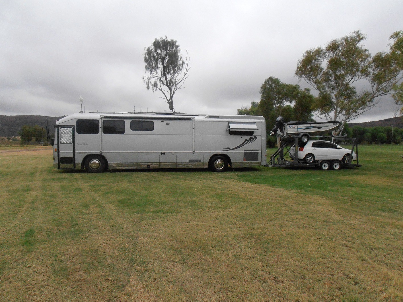 We saw a great trailer at Karumba, a couple of months back . It was closed in. Trailer was suspended on roof inside above the car , coming down with motorised winch. Then roof tilted down at back, again with motorised winch to bring boat down from on top of the roof. Very smooth and impressive.