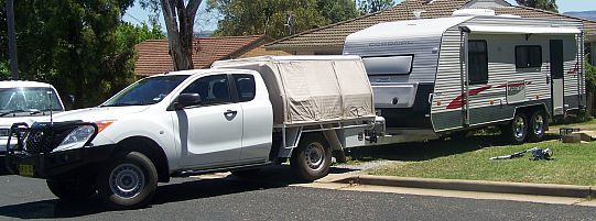 They say a man's home is his castle. Well hopefully this will be ours for a long time. Picked her up last Friday, hardly know she's befind the BT-50 & very comfortable. Powered camp at Nowra Showground Friday night, unpowered at Forbes Lion's Park free camp Saturday night, home Sunday & into the driveway pending addition of solar, etc. Now only have to finish the reno's, put the house on the market, sell or toss the stuff not needed & away we go (hopefully about a month or so)