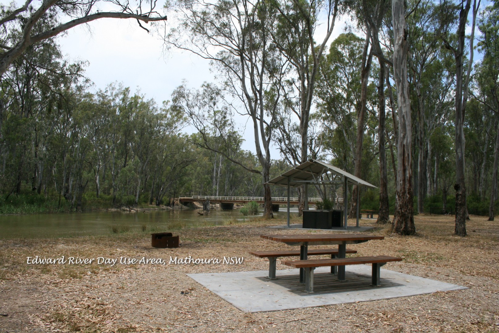 Camps6 NSW site 535. From Mathoura, take Jones Road onto Picnic Point Road for approx 5km to Millewa Road (just past the Reed Bed Bird Hide sign), then turn left for approx 2.5km along a very good dirt road to the Picnic Area and Campground. Drive past the day-use area along the well formed dirt road. There are two cleared camp areas on the right and another on the left. Continue to the right, past the toilets and the road ends at the final campground. All four camping areas are about the same size.