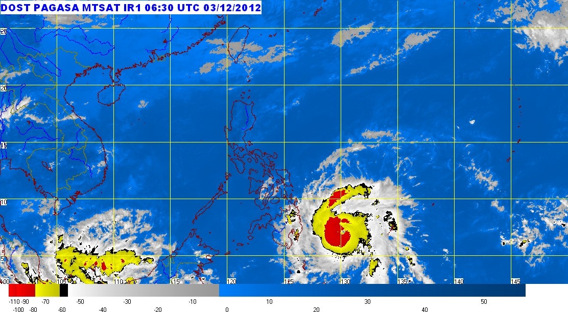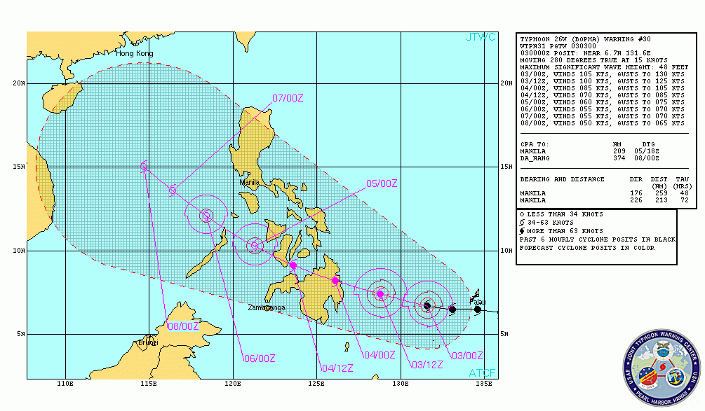 Have a look at this !! This is a typhoon heading for the Philippines forecast to be over the top of my house at 8.00 p.m. Tuesday December 4, with winds from 70 to 85 knots...If you don't hear from me again, you'll know I've been blown away !!!