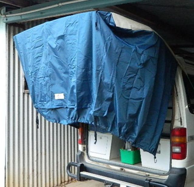 Have to remember here, that I got a different model to the one Vic. bought. He got the one for RV's and Mini-vans. I thought if I got the Large Truck Tent, it might fit mine better. Not so unfortunately. But I've already got a buyer for it, so no harm done.