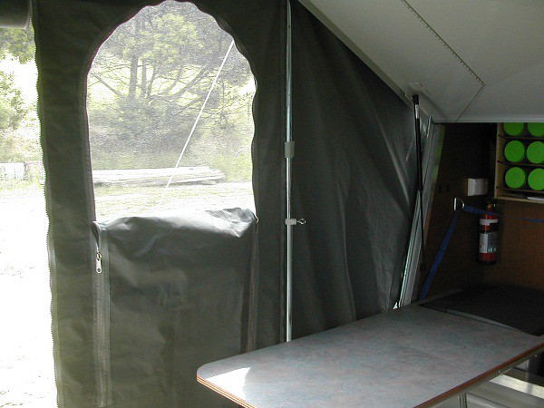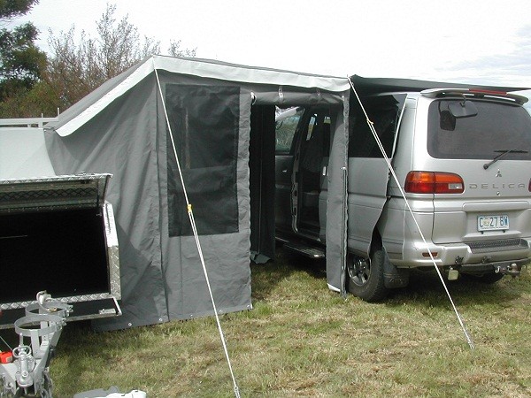Everything folds away. There is a gas hot water heater, 2 burner stove, sink, 100lt water tank and pump, 3 way fridge. The annex tent I had made by Streamline in Devonport to my design and it packs away and is stored in the front box. Sleeping accommodation and clothes etc storage is in the Delica. I'll see if I can load some more pics that I took on a short trip over Christmas.
