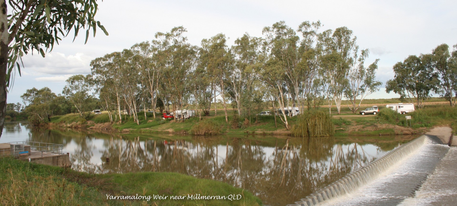 Yarramalong Weir - Camps 6 QLD site 762 - 27 50 07 S 151 27 02 E - 11km north of Millmerran (33km south of Pittsworth) off Gore Hwy, turn east on Leyburn/Millmerran Road for 11km then turn north for 3km to Weir - signposted. Three night limit (no fee) with flushing toilets, which are fairly new and in good condition. The Condamine River has had floods in recent times and there is evidence of the damage, but the camp area is in good nick.