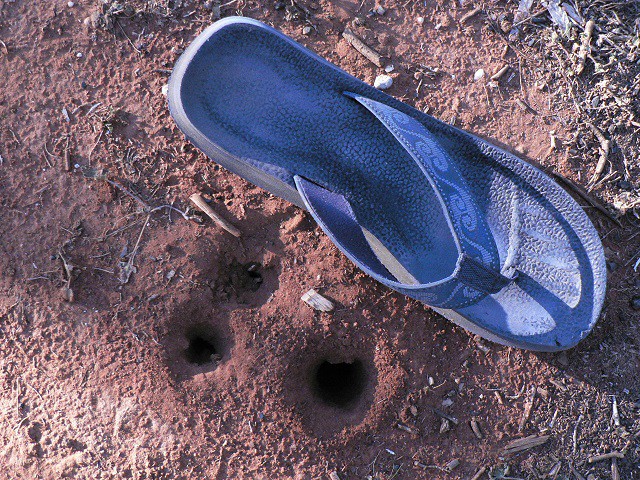 Thanks for that Jon, the holes certainly look the same, just glad none wer flying around at the time, wouldn't want to be mistaken for a female of the species, they sound like randy little beggars. The rest stop was between Broken Hill and Cobar about May/June.....