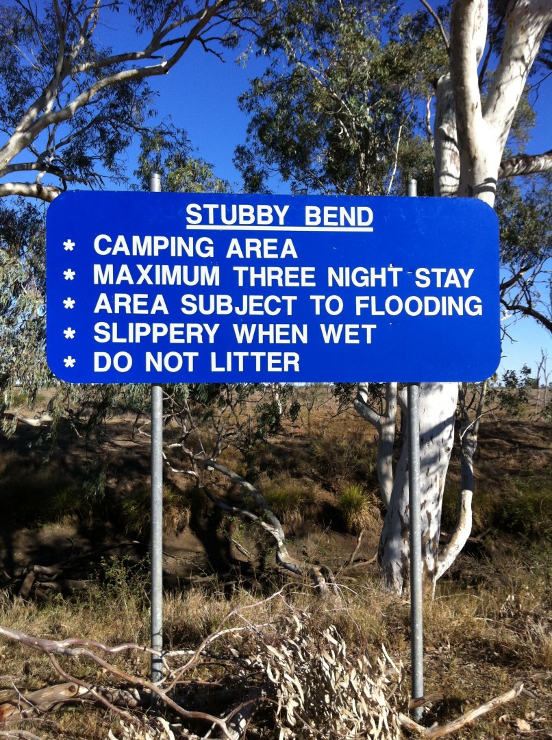 Hi all as I sit here in chilly Canberra at the end of nearly three months on the road, and before I get home to the South Coast, I will now attempt in downloading from my log a few good free camp spots from our journey. Some you may be aware of or have used but never less here is the 1st one. Stubby Bend Camp area Tambo Qld have to be self sufficient but you are only 2k's from town where you can get water or top up before you stay there. It is on the road heading to the show ground. Bins and cement table and chair provided. Will add other as time allows enjoy