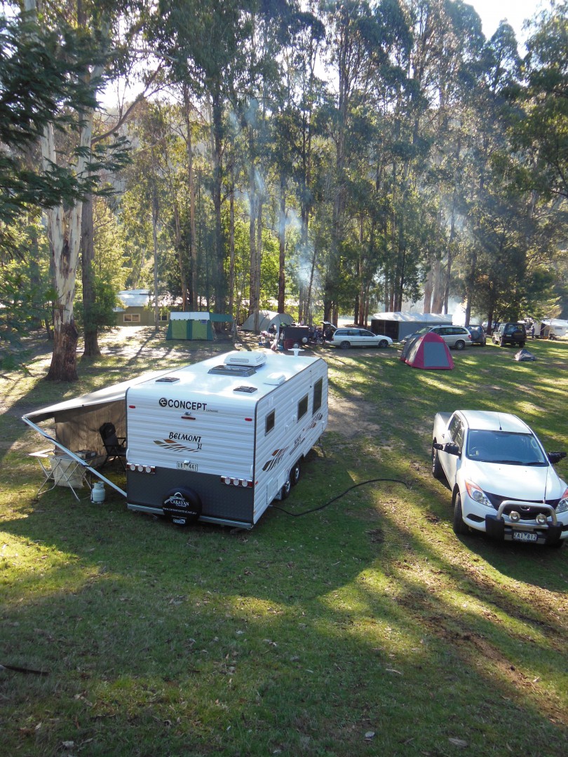 thanks Gary nice place for our first trip in the new van it was only $6.00 per night per person no power it has limited showers and toilets dogs on leds and fires in dedicated areas free hot water for dishes and coffey and tea free bbqs and a larg mess room if raining you can book on line at parks victoria they only have limeted vans so plenty of room