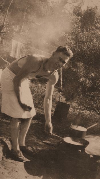 Here's a couple of pics from the family album showing family/friends and the way camping was back in the 1920s. The first one shows friends of my parents camping with the bare basics. Not a motorhome in sight! The second shows my dad about to crack a few eggs into the pan. The pics were taken about 15 years before I was even a twinkle. So maybe this is where I get my wanderlust from.