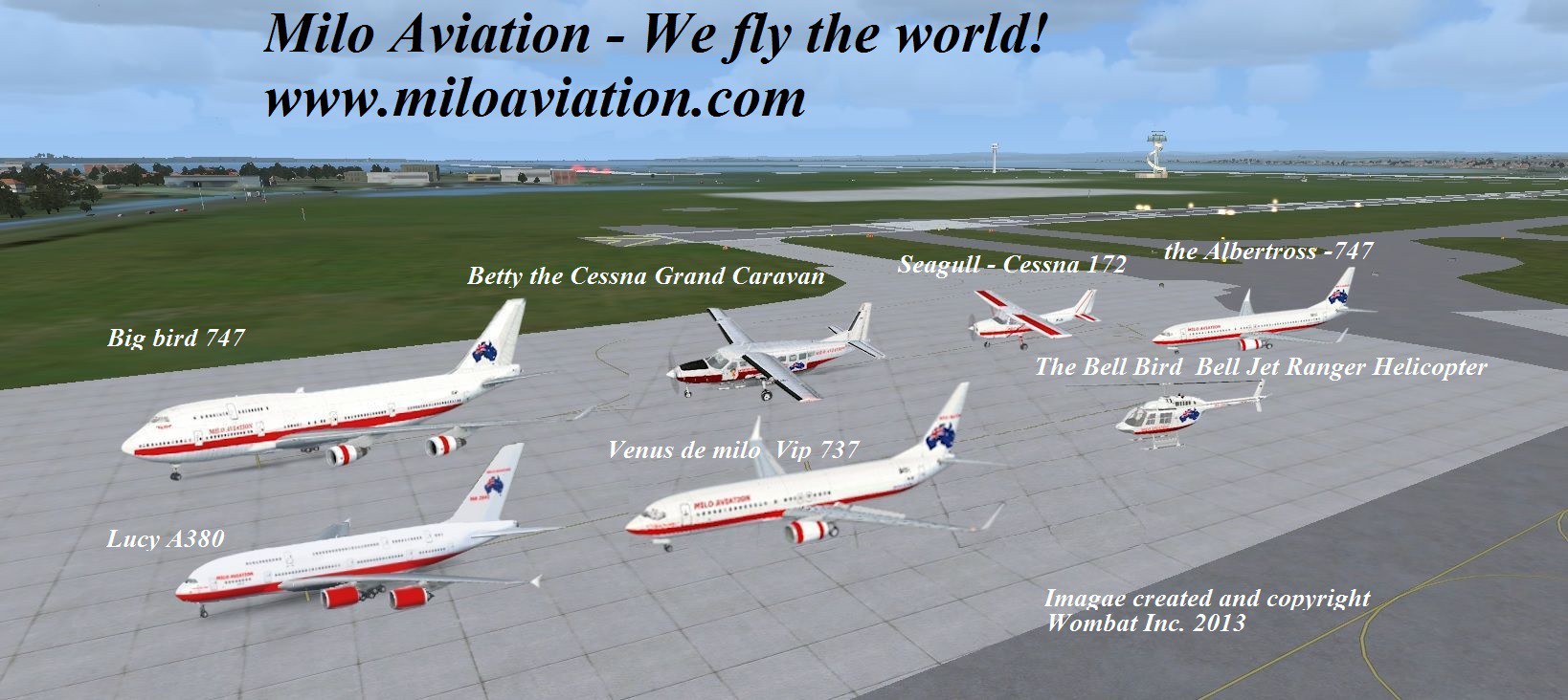 Milo aviation pictures created by Milo and also with permission from Wombat Inc..