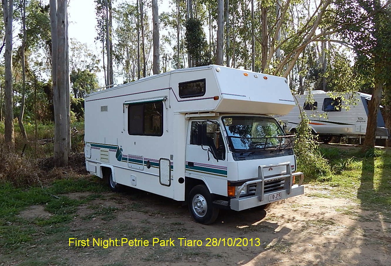 Thanks to you all and we hope to catch up with some of you 'around the traps'. Here's a picture of 'Archie' on our first night away from bricks and mortar. This was taken at a lovely free camp at Petrie Park Tiaro overlooking the Mary River.