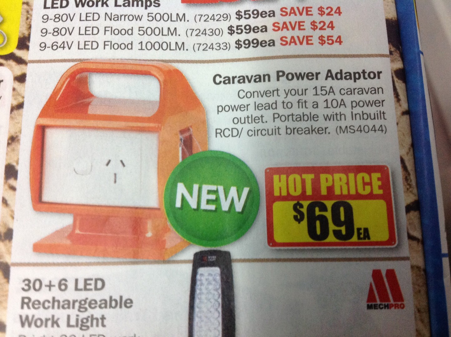 This Power box handy for home to plug your van in it has a RCD switch and Australian Approval it only has one 15AMP Power point and a 10AMP plug.on sale today from Repco $69.00 good buying I thought.