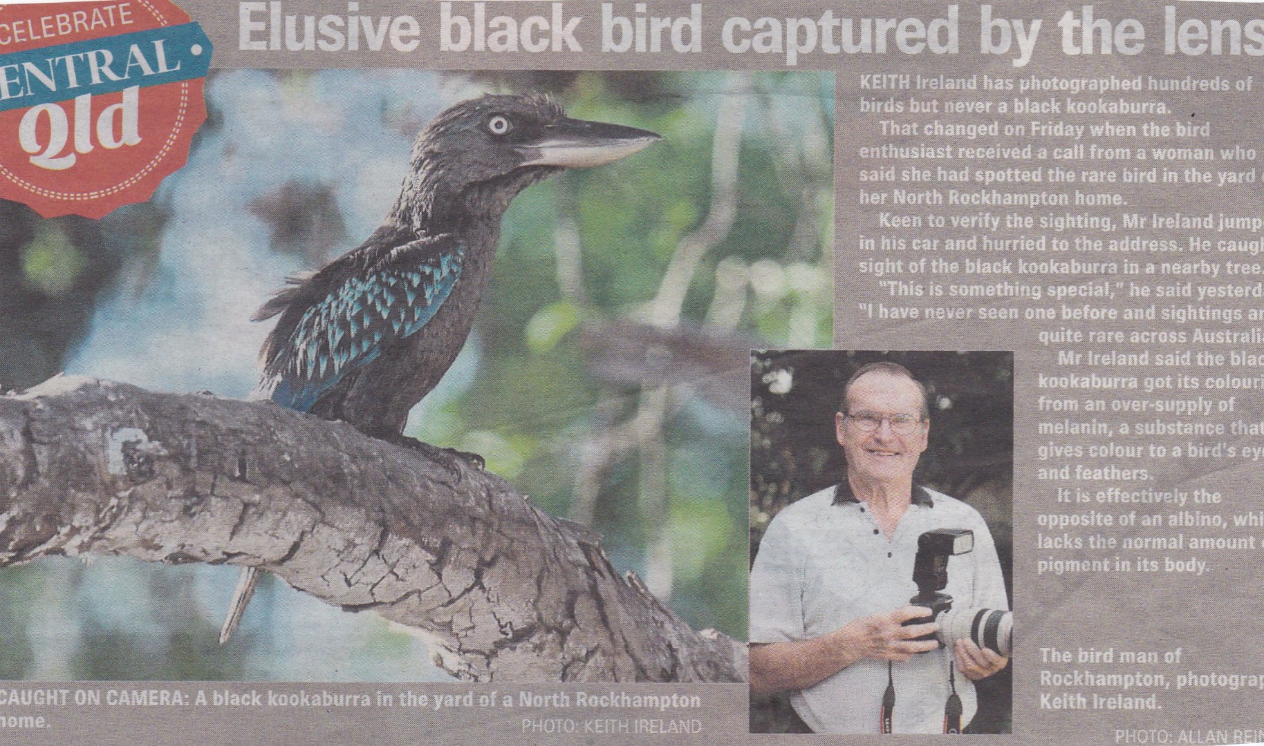 If you Google "Black Kookaburras" on the Image page, and click on the third Pic., you'll find an article about a whole family of them in Sydney, at Liverpool.