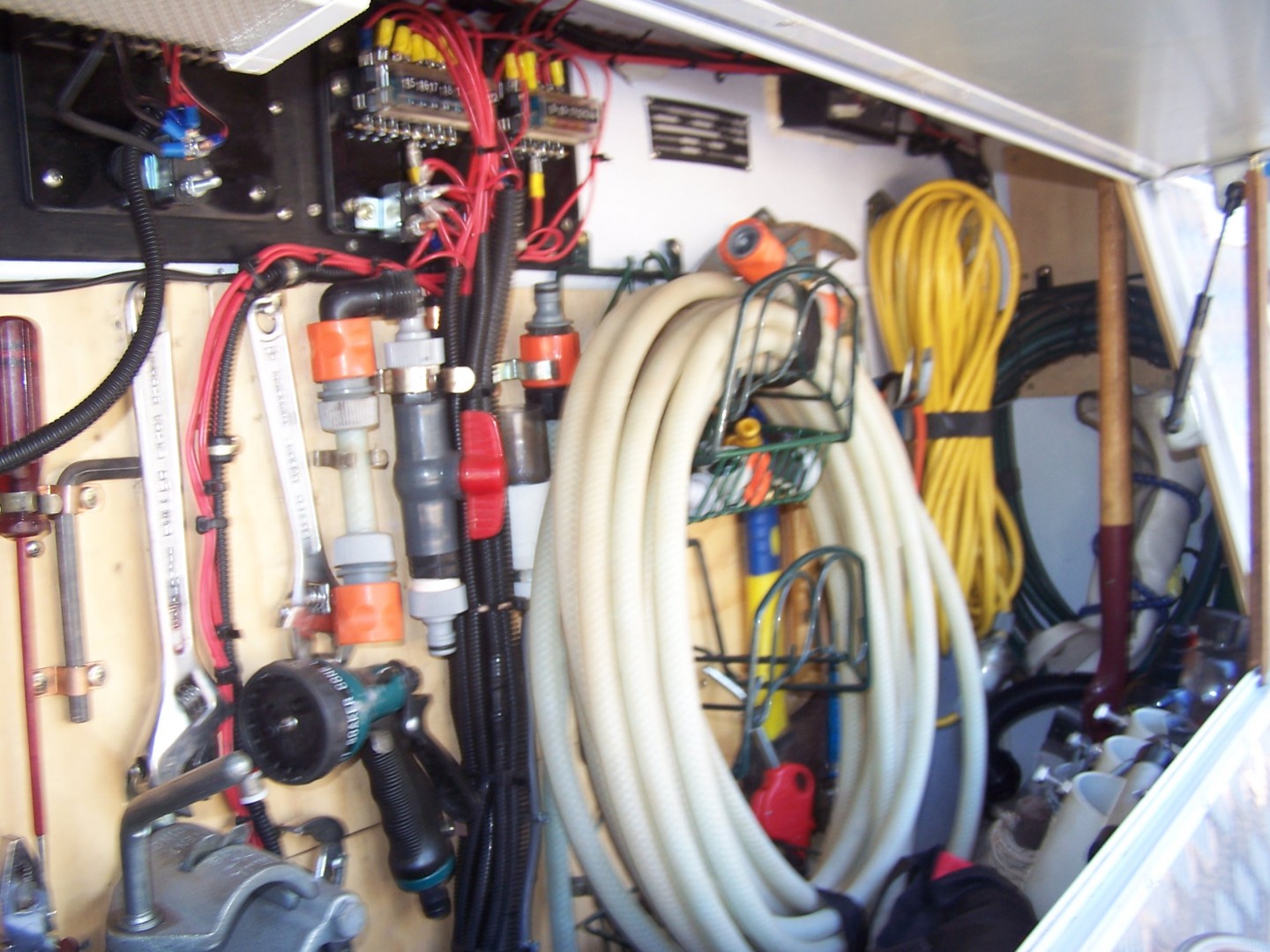 Yes, we traveled around Oz for 15 months about 2yrs ago as i looked at heaps of set-up's Bryan. I came back completely confused, so I went about thinking just what I wanted and where, as you can see the set up is user friendly and the small boxes on each side of the rig are great, fishing rods 8 in all hanging from inside the roof is magnificent and the moblie crane is re-moveable and can be ex-tracted from the trucks workshop.