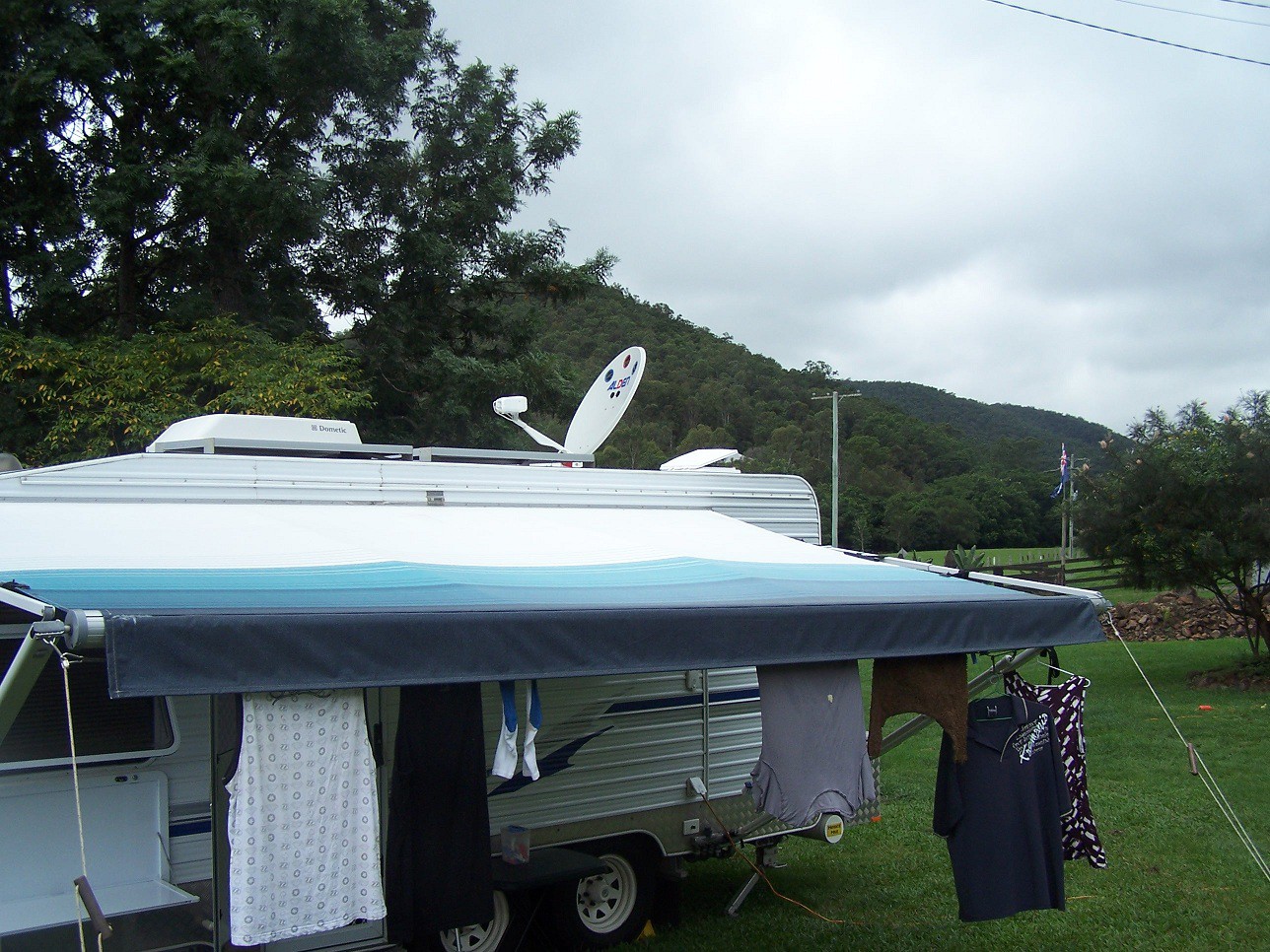 "Now" this has been a great mod as we correct water from the awning roof and graviey feed into my 3 water tanks and the poly pipe is connented to the awning arm and slides went you either lift our drop your awning
