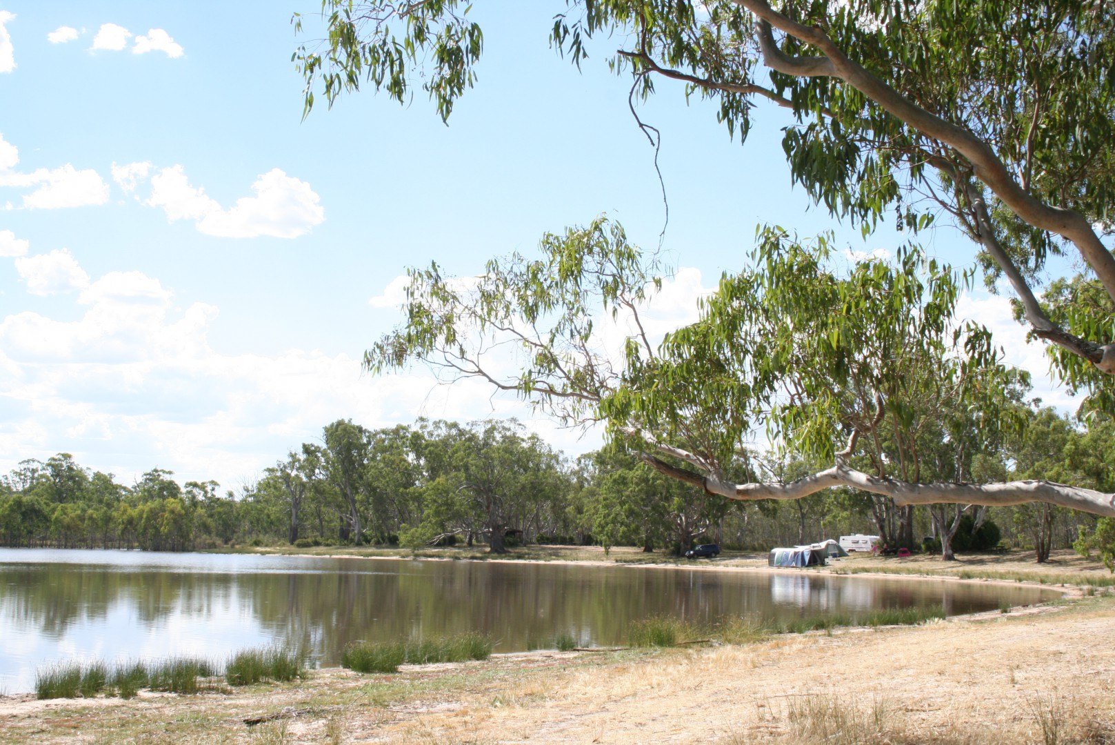 Toilets, hot solar showers, tank water and water from lake to wash in. Shady trees, plenty of space around about one-third of the lake. Swimming, fishing, and NO jet-skis, speed boats or motorbikes.