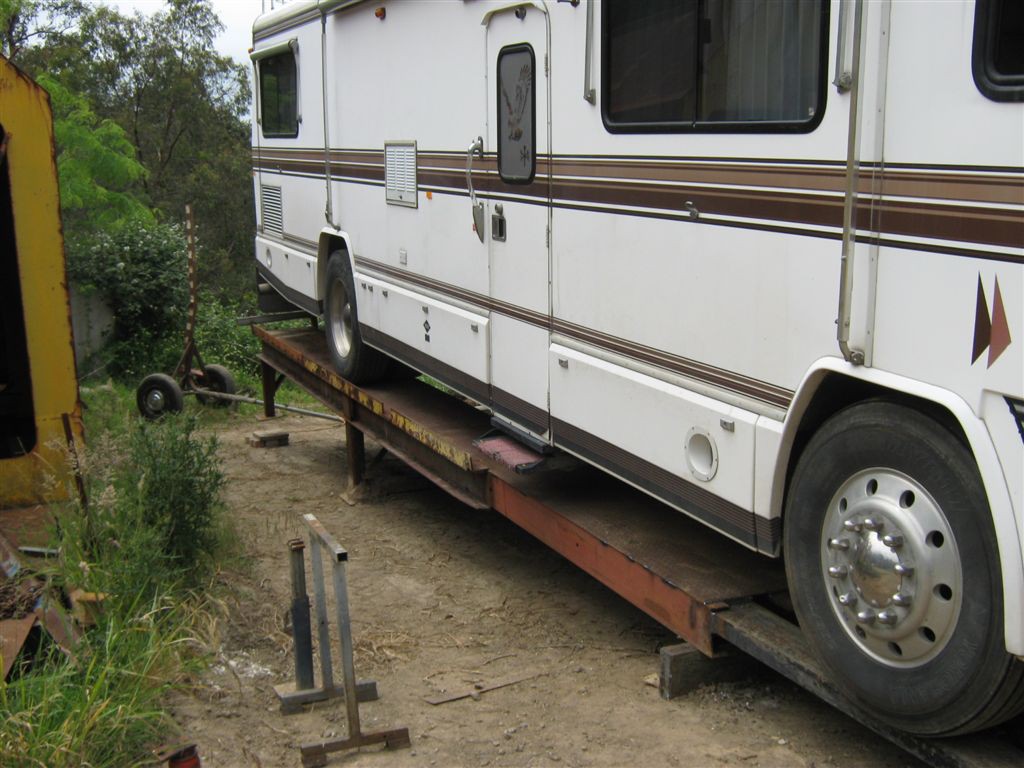 First mistake, Its a diesel pusher, All the weight is behind the rear axle, So to make my ramps work now, it has to be backed onto the ramps,