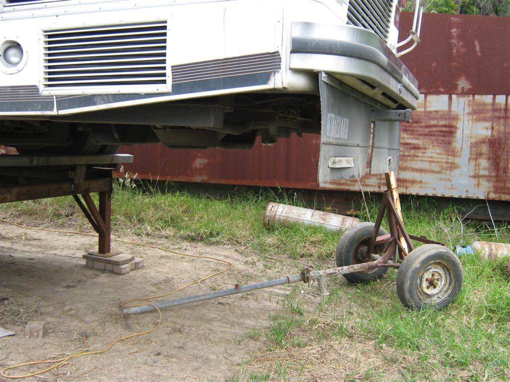 I ended up building dirt ramps so the ground was raised up a bit allowing the Coach to finally back on and all the way to the stoppers,