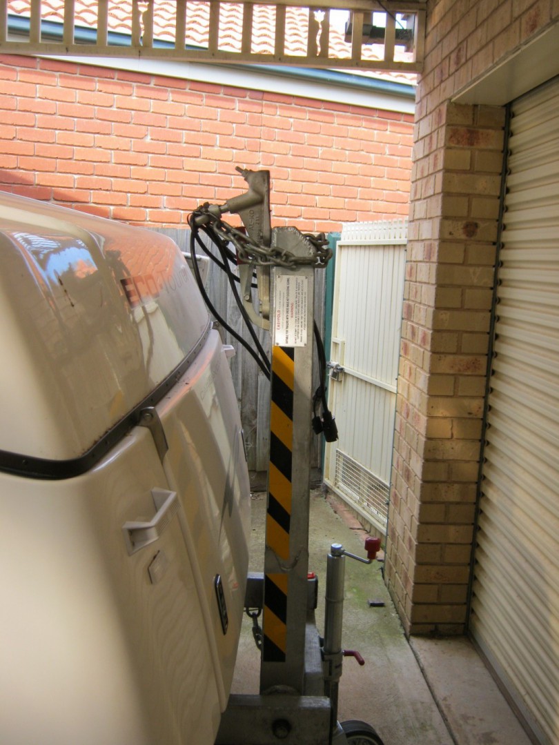 The folding A Frame is suitable for trailers / caravans with a gross mass weight of 3500 kg. Our van is well within these limits. The folding A Frame is is ideal when you have undercover limited storage at home like we do.