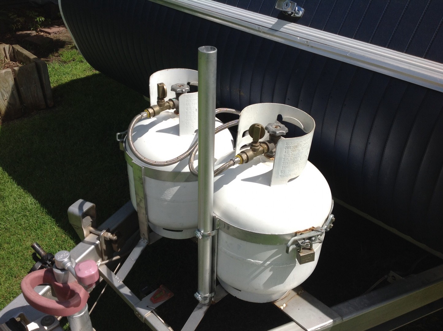 Hi Sarge you can bye an aluminium extension pole from some caravan dealers, or go to Bunnings and bye an extension paint roller handle, wich is aluminium also, I put two pics here to show you how I mounted my antenna pole,my pole is from a caravan dealer,hope this helps.