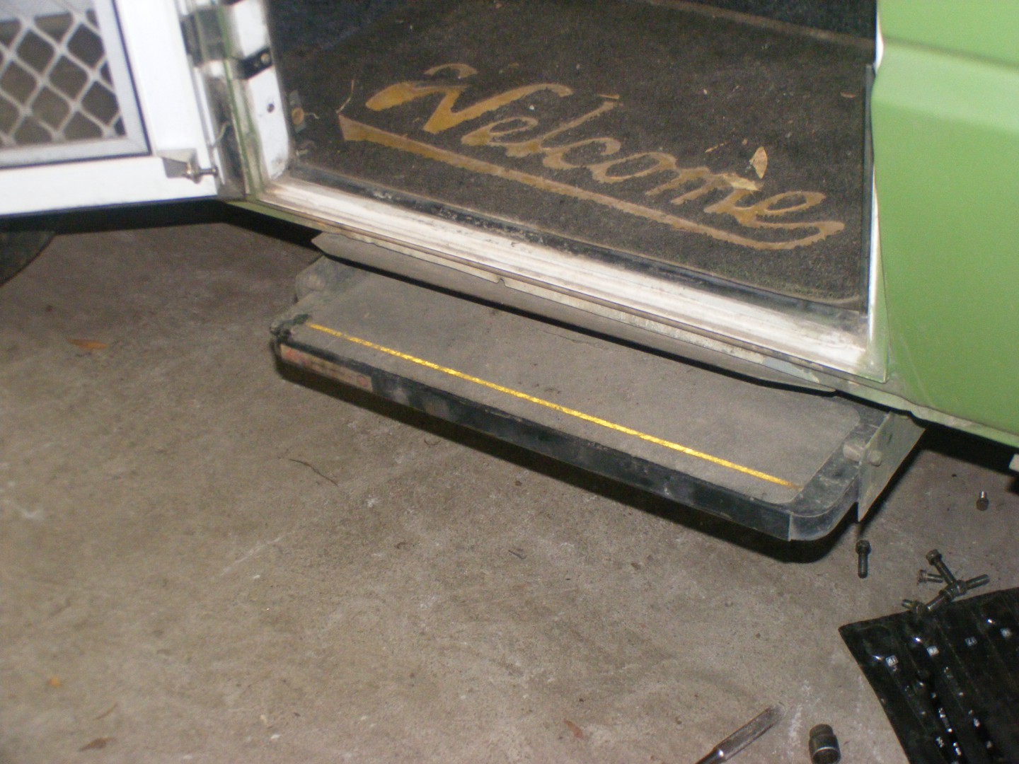 2. Had to get a pull out step when we had van raised- it has two steps actually. After 1st rain realized how slippery so immediately added marine carpet again & now it is so safe & would never go back to s stool.