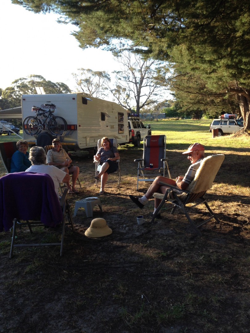 When we arrived yesterday afternoon there was another couple already here, had a chat and decided that Happy hour was not too far away. So Rod, Sue and I set ourselves up and under the shade of the Cyprus Trees we settled in with a drink or two and a good chat. Not too long to wait before another caravan pulled in, we yelled out for them to join us and over they came. A beautiful couple, who provided more conversation and laughs. As the evening wore on, it was determined that Rod knew these people from years ago and then the original couple had met the new couple at a free camp a few weeks ago and then to top it all off, the new people knew Kevin and Kim at Greens Lake. So the world had just become smaller again. After a very raucous telephone call to Greens to re-introduce every one again, it took us another couple of hours to complete Happy Hour, and then it was only disbanded because it go so darn cold. I will tell you how cold it become, I went and put my dressing gown on (over my clothes), to keep warm, and because of fire bans we were not able to light a fire.