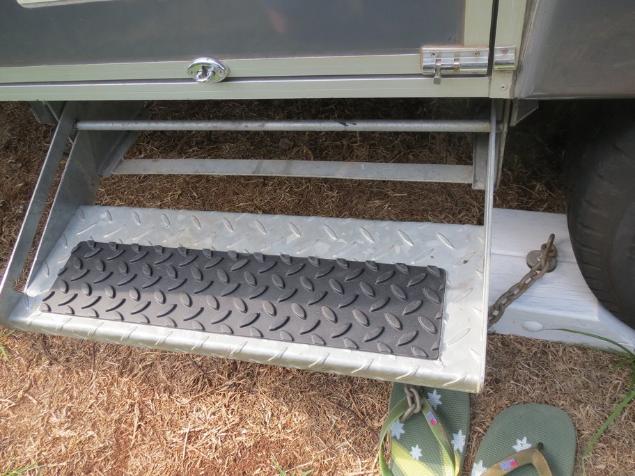 Was just down at SuperCheap and bought a adhesive backed non-slip ribbed rubber pad for the step on our Avan - never seen these before and for under $5 it should help avoid a slip or two on the steel surface.