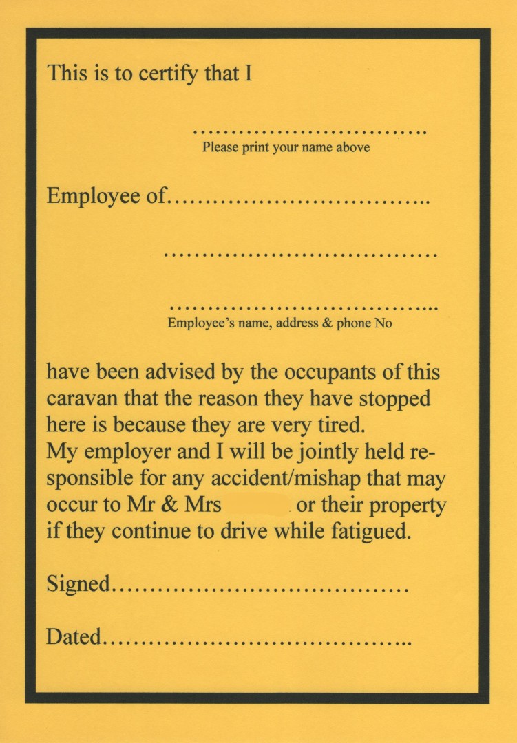 Just be aware that whilst the employee may indeed refrain from signing that document, or moving you along, the fine that they may still issue as per council ordinance, payment of which WILL be enforceable by law, is sure to be a heck of a lot higher than the site fee at the local caravan park.