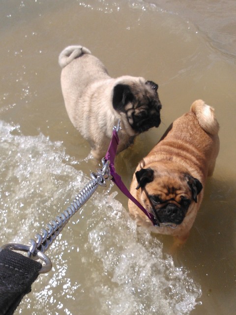 Dogs???? No they will tell you they are PUGS, not little dogs (LOL), seen here on the Greens Lake boat ramp where one was not that keen on the speedboat wash.