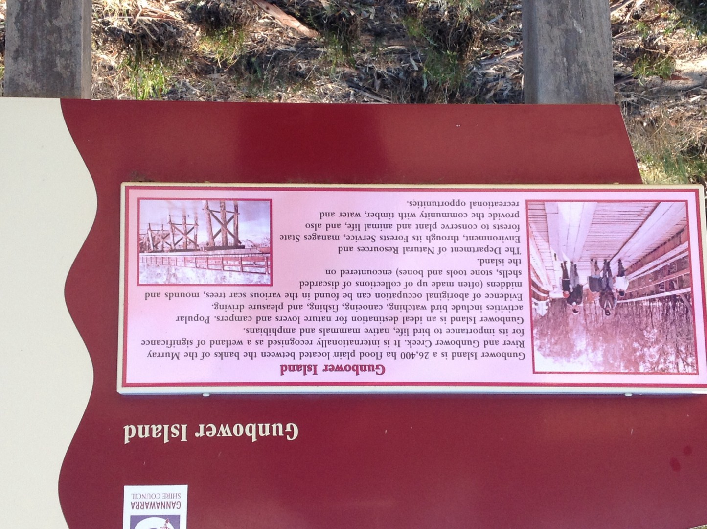 Sunday, ok another night to be booked and while at it might as well stay for two. Went for a walk over to Gunbower Island. Once again a beautiful walk through the bush down a well made walking track. The history of the island is marked along the route and the scenery is stunning. There is free camping on the Island, I would no go over there only because the roads are terribly corrugated and Miss Daisy would be shaken to bits, but it would be a nice place to settle in for a few days. Yesterday afternoon became very hot so not a lot done in the afternoon.