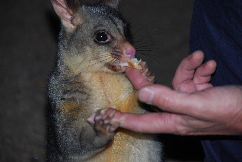 We had some possums visit us in a caravan park in Mackay, Qld, they came down a tree near our caravan and took apple pieces very gently from our hands, their hands were so soft it was a real experience.