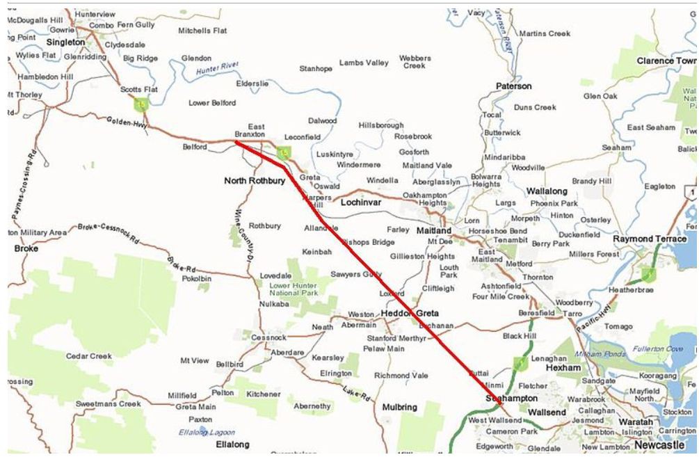 It goes north west, bypassing Maitland, making it a good run from Sydney to the New England Hwy at Branxton.