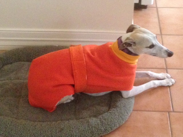 Wow! That is a pretty good coat, I tried to make coats for my boys and whilst they are OK to wear as jamas in the van they are to big to walk out in...have found a very reasonably priced collection of coats made by a lady who raises funds for greyhound rescue.