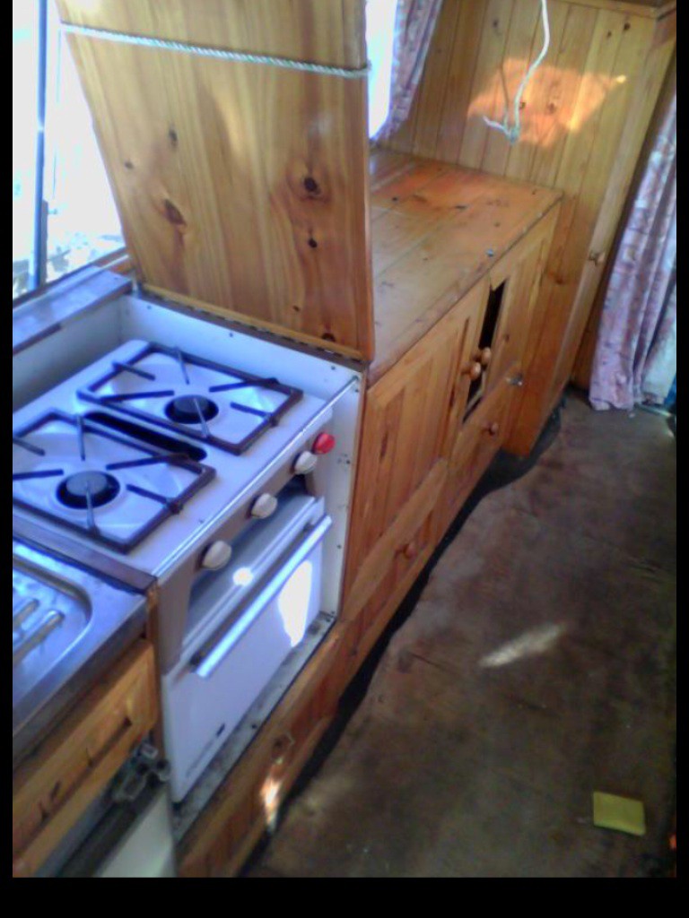 From the brosure. I have the original fridge and stove that work great but the shower was brittle and had to go west as did the gas unit above the sink. Just too dangerous. I'm cutting the over cab disaster down by half but I wish I had the skill to remake the original over cab front. She runs brilliantly though and is very fun to drive. I can't wait to have adventures in her.