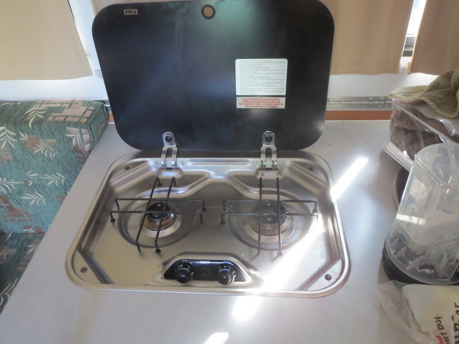 Our Avan has a 2 burner gas cooktop that puts out much more carbon monoxide etc than one of the canister gas heaters. There is no stovehood or ventilation device fitted by the factory. Question: why no warning on cooking with gas in a caravan?