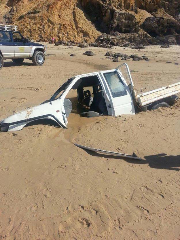 I think some of the pics were from Fraser island and Rainbow beach in QLD. Both are famous for guys who try to get round headlands on an incoming tide.There are some beautys there. Up in the gulf country, I have seen guys leave their cars til the dry season, months later.Love the one of the cop car. Even cops get bogged! Have alook at the "all for 4 adventure" bogged secquence. Bill